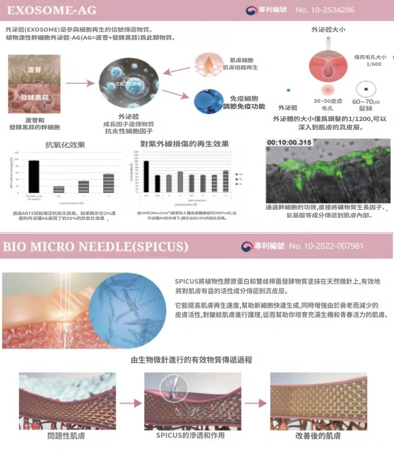 🌟植物衍生外泌體,通過發酵黑蒜和蘆薈進行外泌體化,使有效成分深入肌膚——具有再生、美白、改善皺紋和抗氧化等功能。