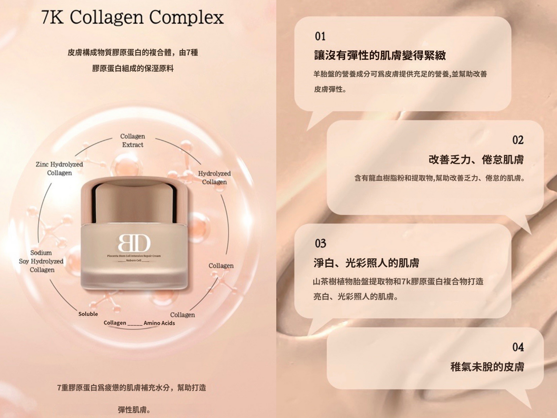 ♦️7種膠原蛋白組成的保溼復合體——爲疲憊的肌膚補充水分,幫助打造彈性肌膚。