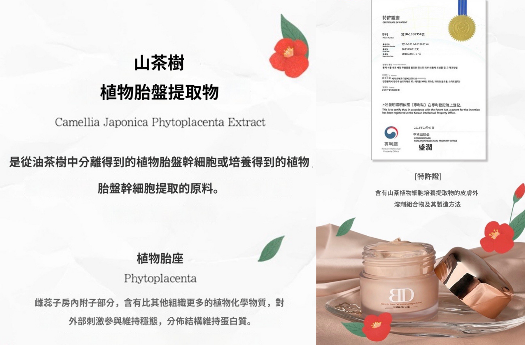 ♦️山茶樹植物胎盤提取物——含有比其他組織更多的植物化學物質,對外部刺激參與維持穩態,分佈結構維持蛋白質,打造亮白、光彩照人的肌膚