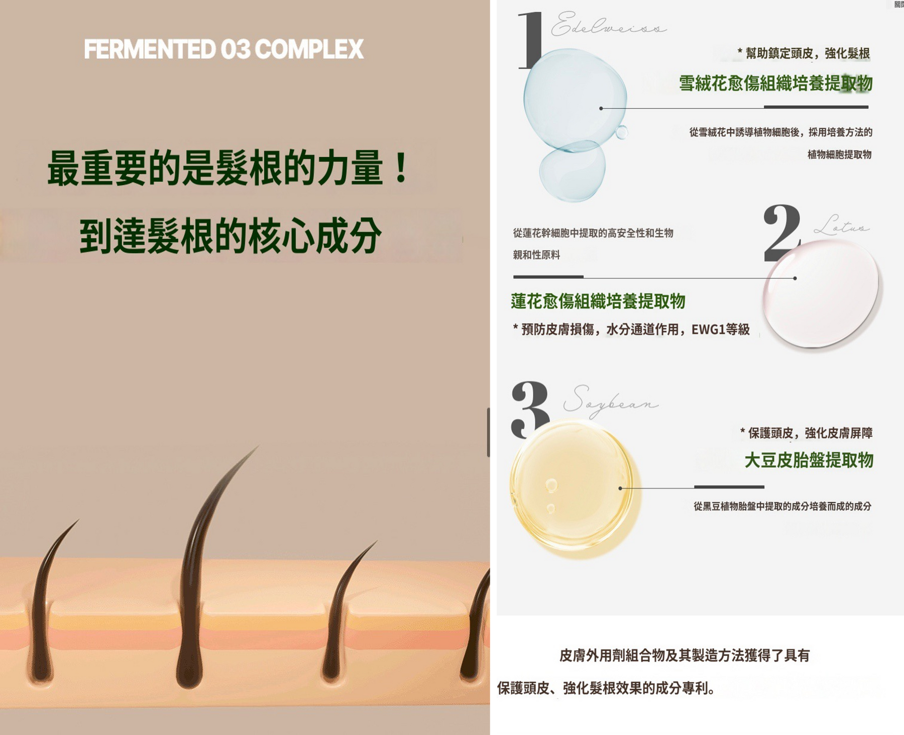 ●大豆皮胎盤提取物—保護頭皮,強化皮膚屏障