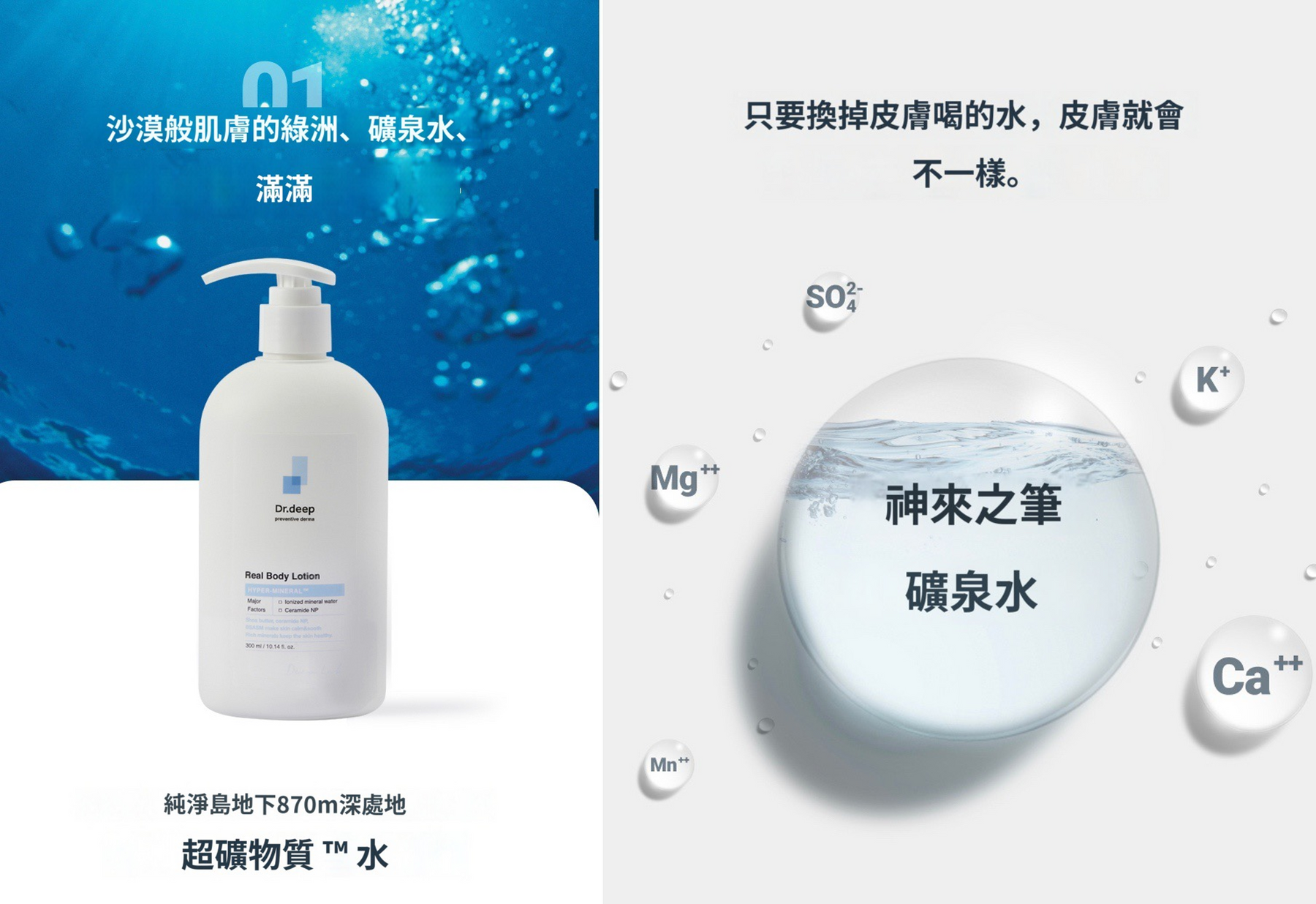 - 富含離子鈣、鎂、鋅、錳、硫酸離子——賦予肌膚營養與保濕