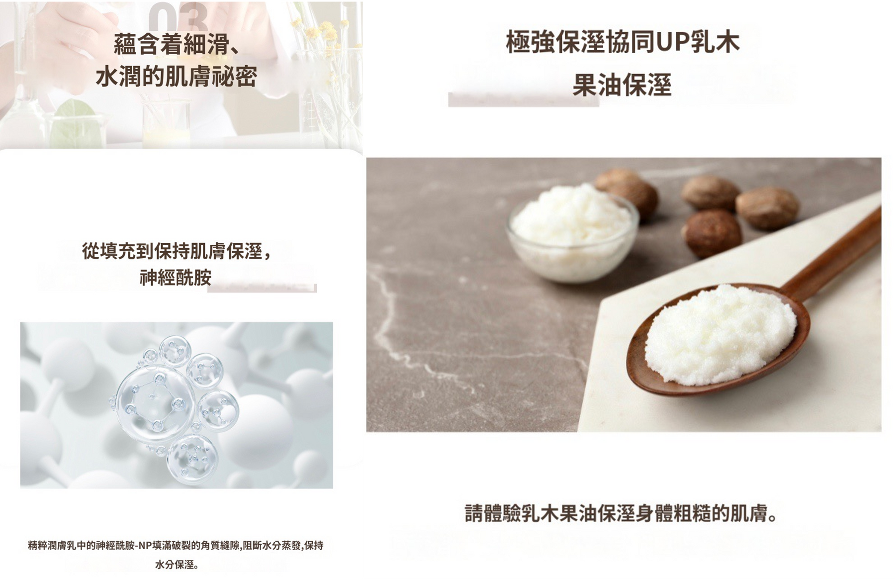 - 含有牛奶5倍的鈣——強化肌膚保濕屏障及天然保溼因子