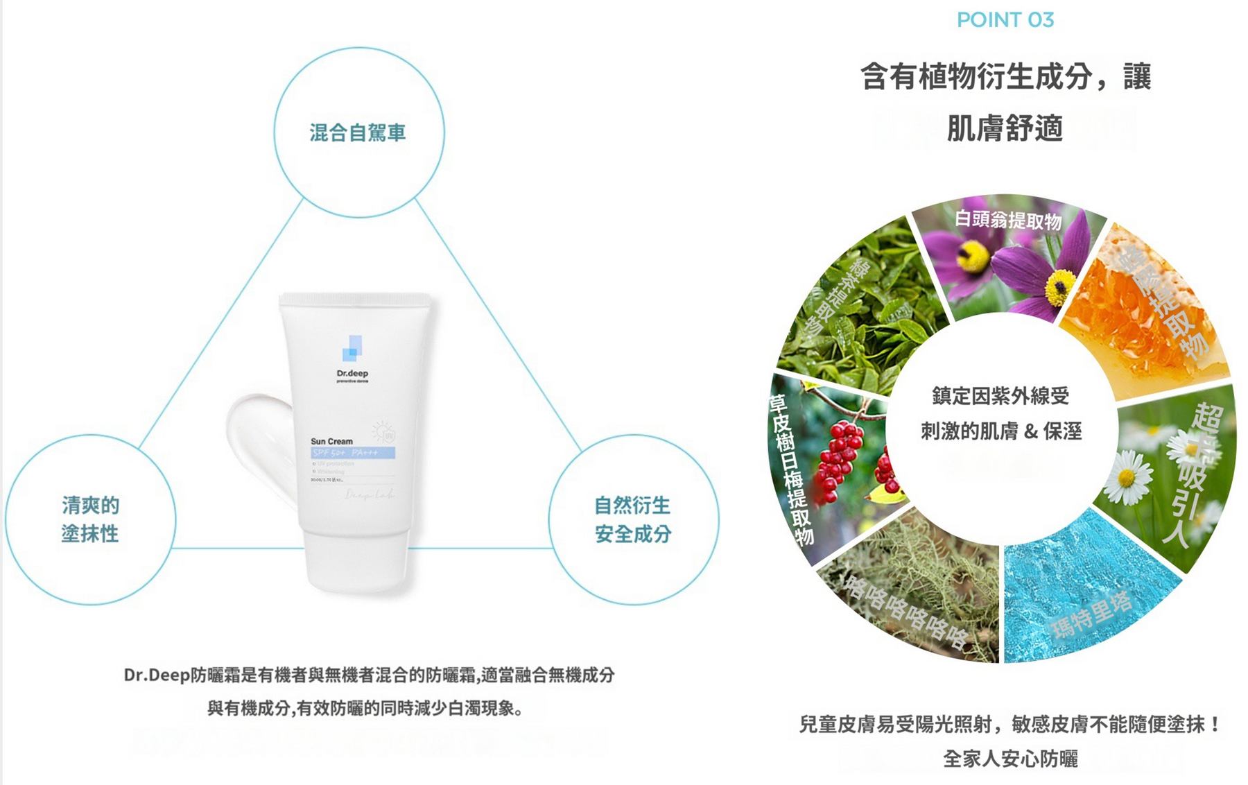 兒童皮膚、敏感性肌膚也可溫和使用,全家安心護理防曬霜