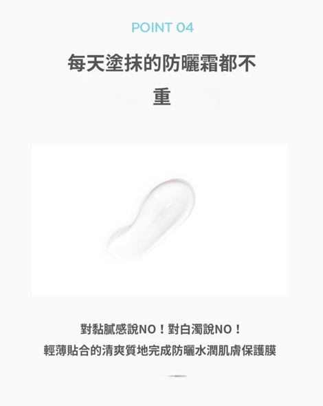 不黏膩、無白濁現象,輕薄貼合的清爽質地形成防曬水潤肌膚保護膜