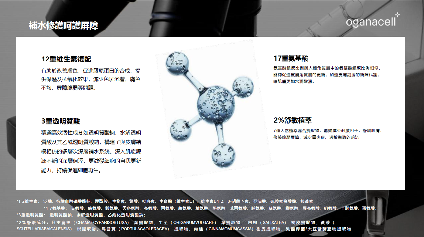 12重維生素 x 17重氨基酸x 2%舒敏植萃x 1%3重透明質酸鈉