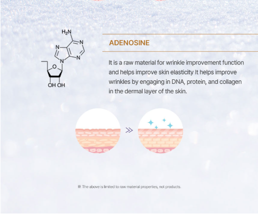 - *腺苷—改善皮膚彈性, 幫助改善皺紋。
