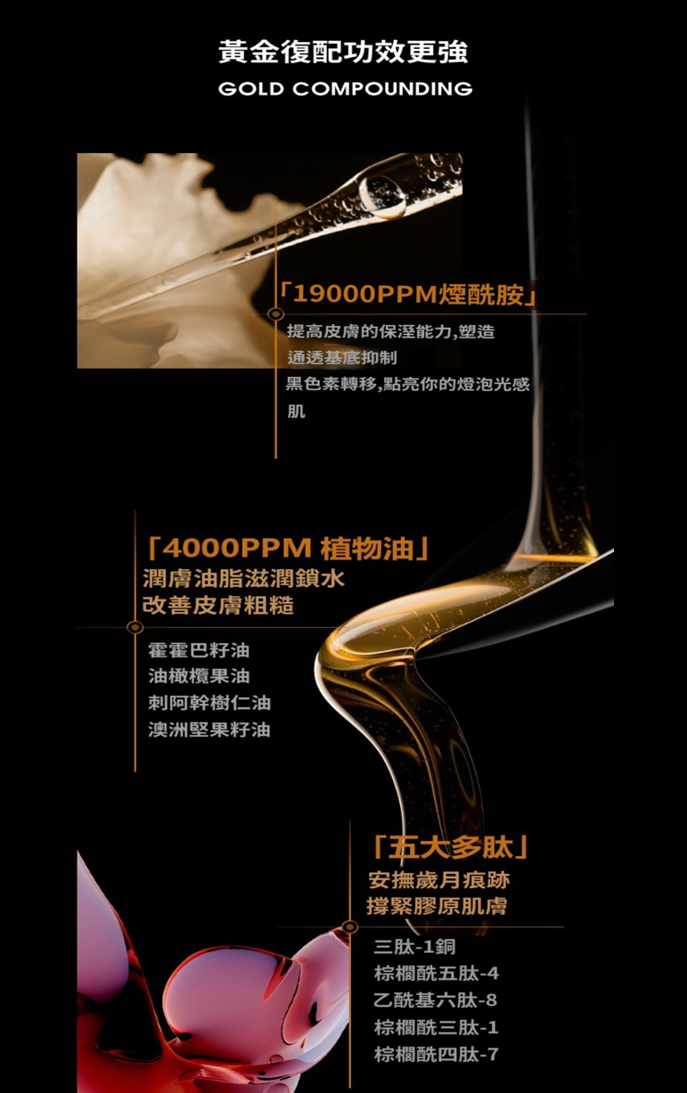 ——保持皮膚水分,提供皮膚細胞營養,使皮膚纖維母細胞增殖,促進膠原合成並預防皮膚衰老,有 助促生彈性蛋白,維持肌膚彈性!